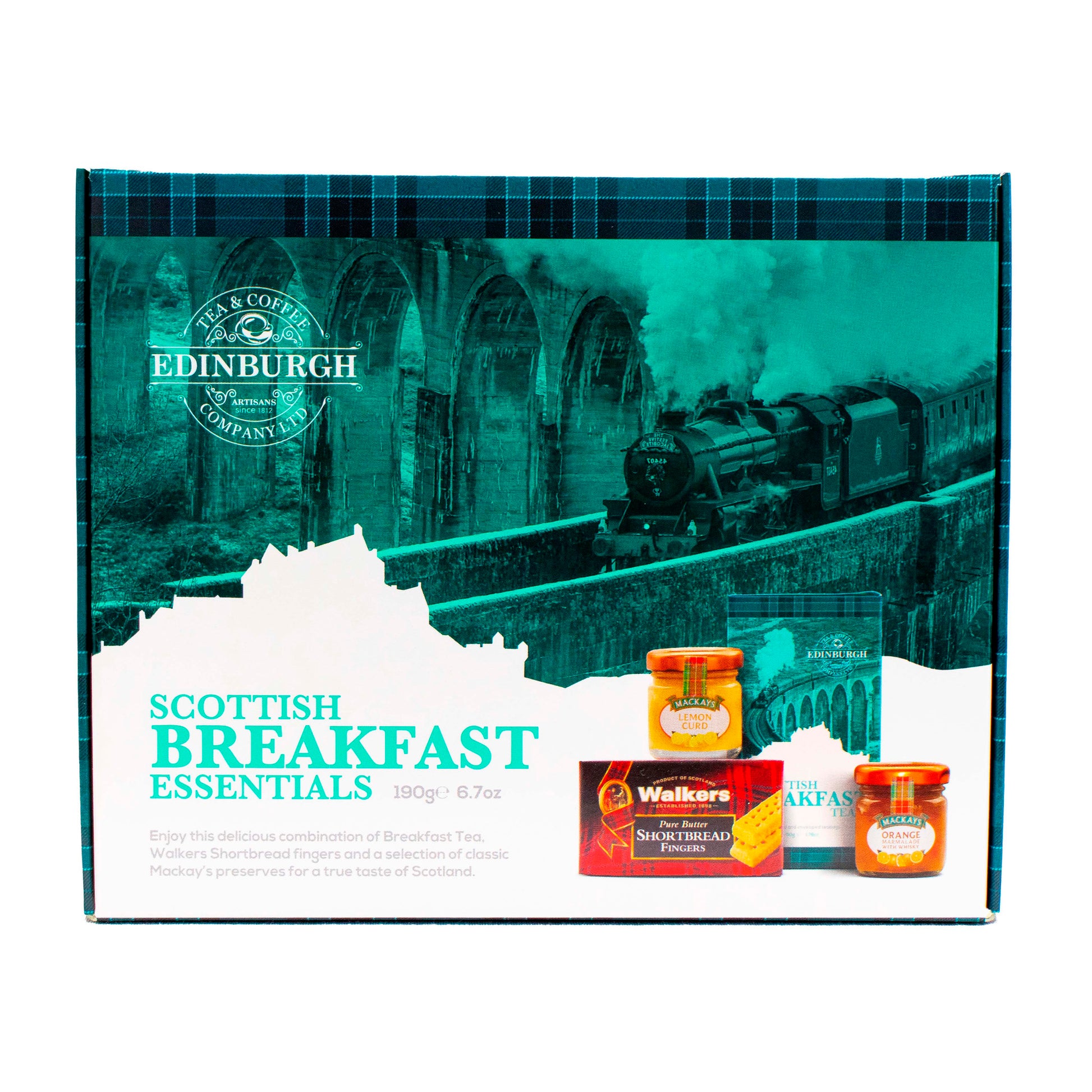 Enjoy this delicious combination of Breakfast Tea, Walkers Shortbread Fingers and a selection of Mackay’s preserves for a true taste of Scotland.