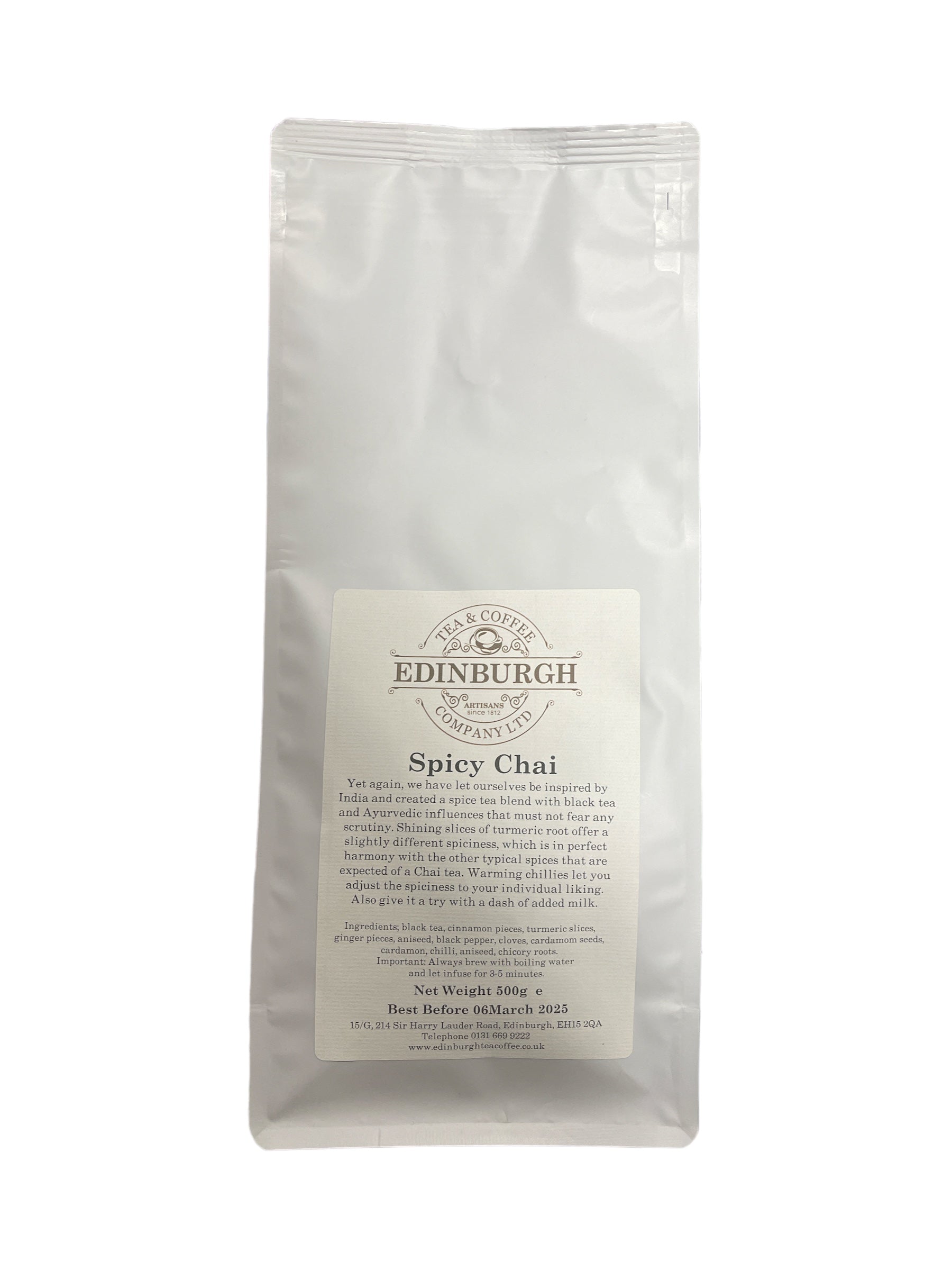 Experience a cup of tea unlike any other! Our Spicy Chai awakens the senses with its unique blend of spicy turmeric root and classic chai spices. Enjoy hot or cold - with a dash of milk for an unforgettable taste. Are you ready to be surprised and delighted?